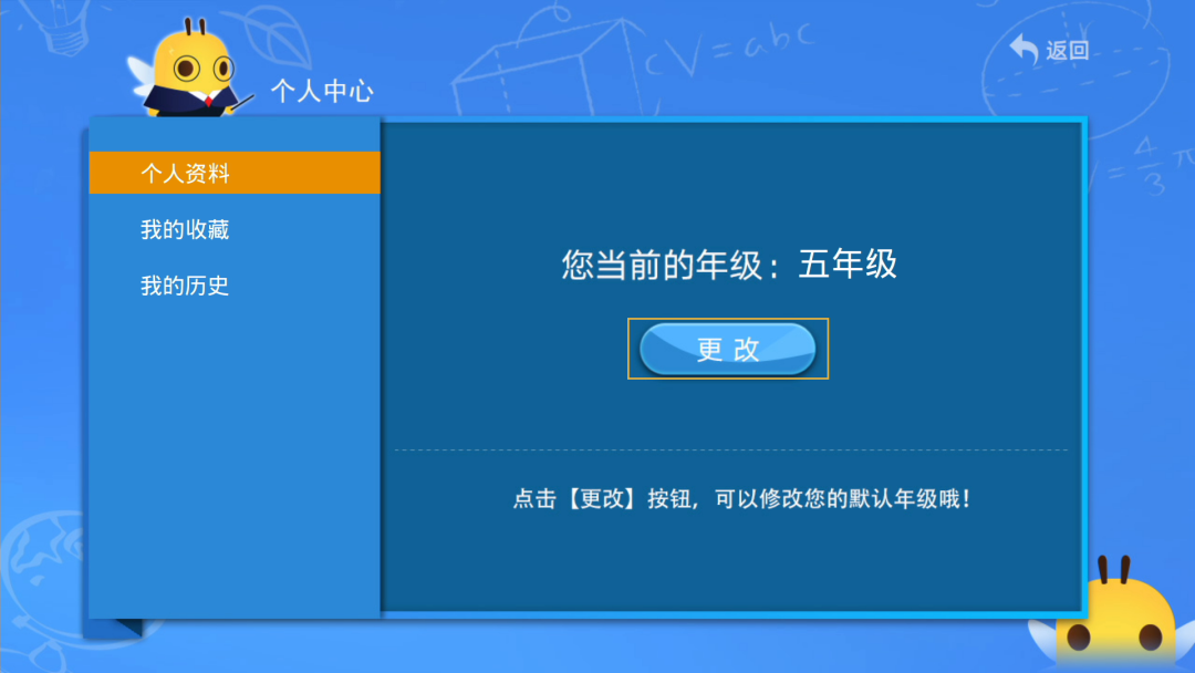 2、 默认展示一年级内容,可在弹窗重新选择“默认”年级