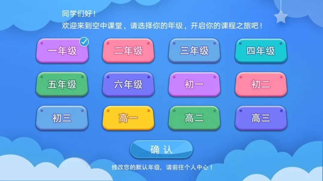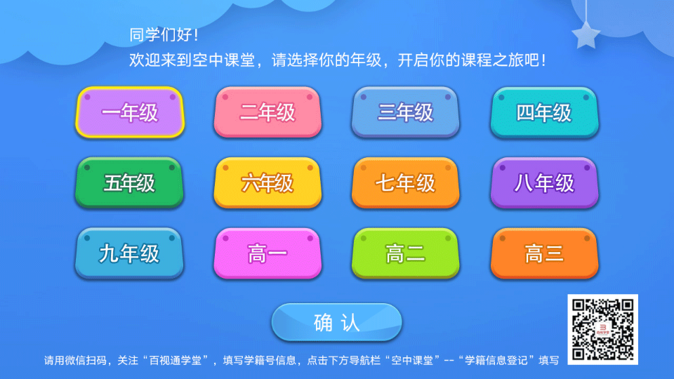 2、首次进入“空中课堂”,选择年级