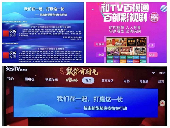 2020年春节,全国人民打响了抗击新型肺炎的“战疫”。“过年宅在家”成为重要而有效的防疫手段之一。如何让全国亿万家庭“宅得不寂寞,宅得有年味”?作为全国规模最大的IPTV内容服务媒体,东方明珠旗下新媒体BesTV百视通喊出“一起看,才是家”“哪儿也不去,免费看电视”等口号,把众多精彩的影视内容当做年货,免费提供给全国30个省份、上亿家庭用户。