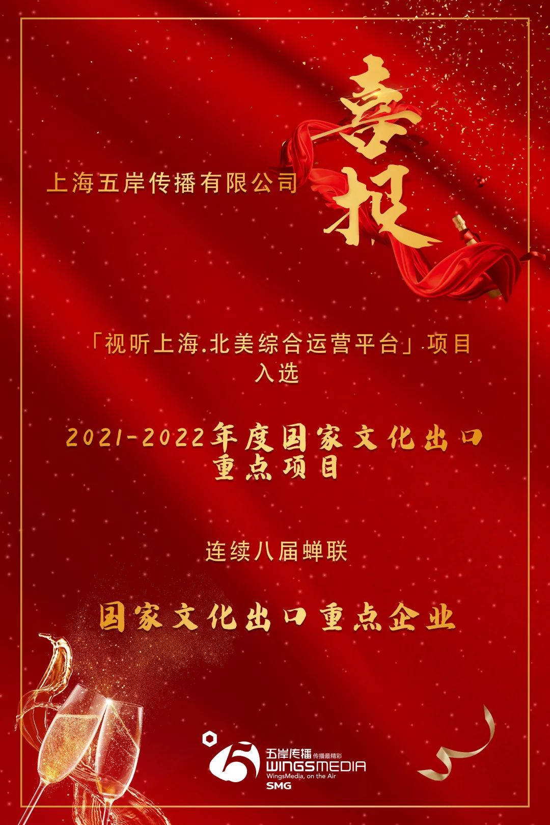 喜报!五岸传播蝉联国家文化出口“双重点”