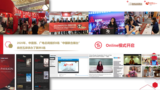 2020年,中宣部、广电总局共组织了8场这样的“中国联合展台”,尚世五岸承办了其中的3场,实现了参展规模更大,承办活动更丰富,话题传播更吸睛的全面升级。云展览、云交易、云推广,媒体融合让“中国故事”继续走向海外。