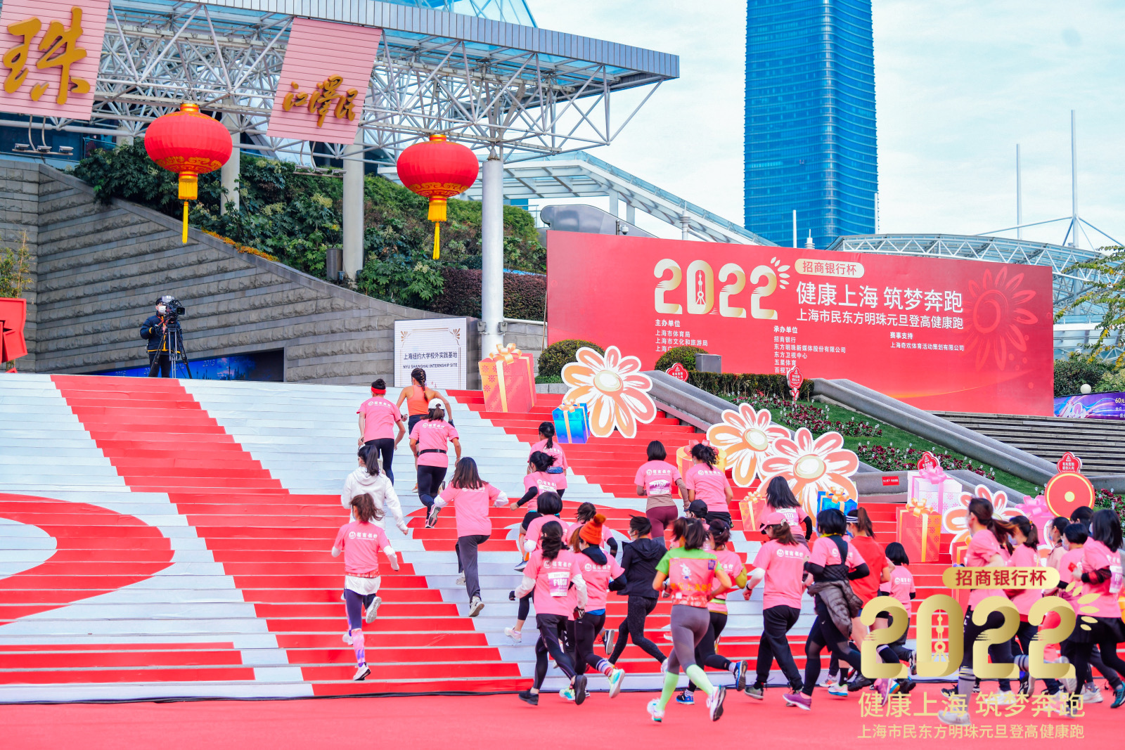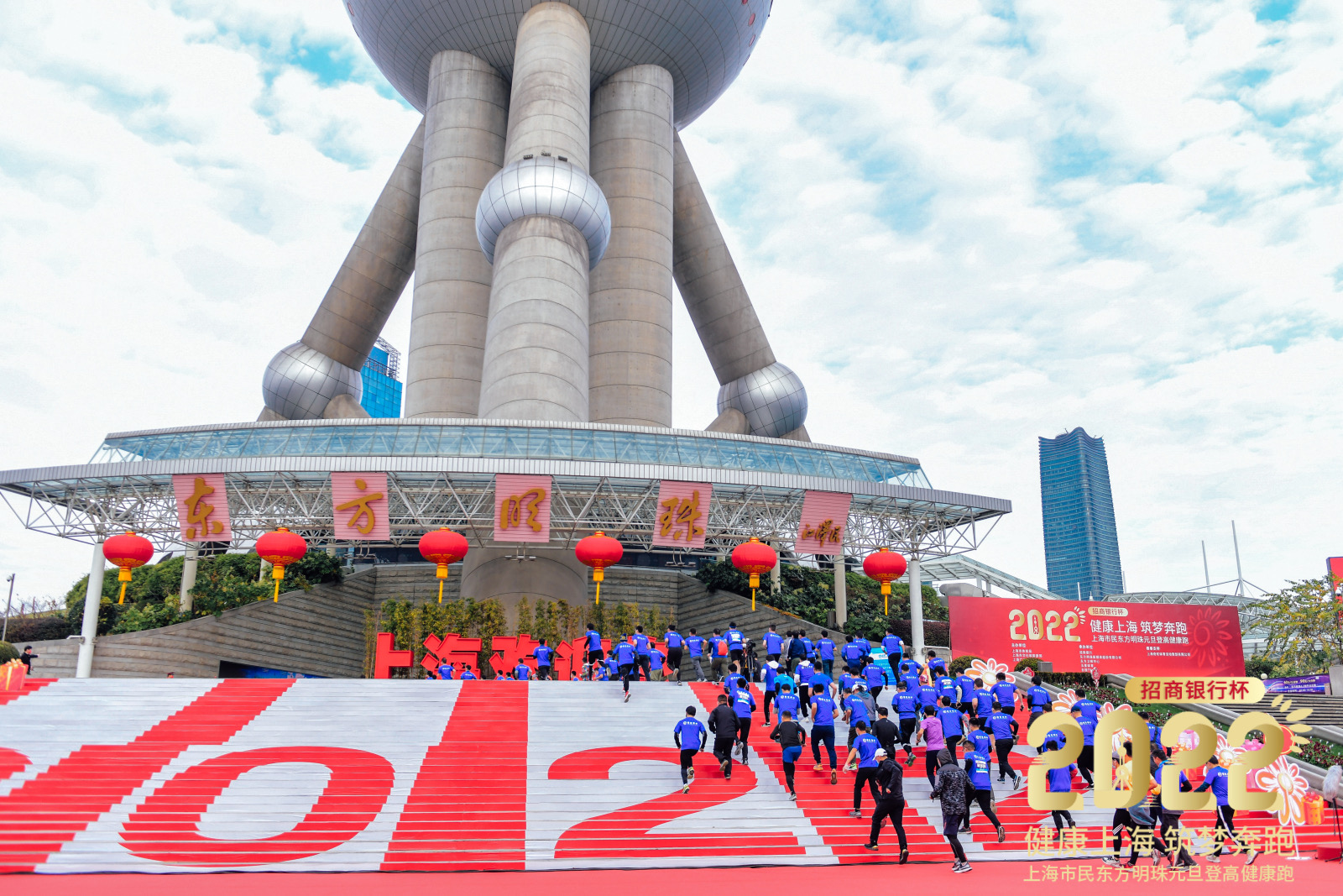2022年1月1日上午9:00,2022年“招商银行杯”上海市民东方明珠元旦登高健康跑于东方明珠广播电视塔举行。本届元旦登高健康跑以“健康上海 筑梦奔跑”为主题,旨在共建共享健康上海,加快打造全球著名城市,凸显在书写新时代答卷进程中,上海市民高昂的热情和开拓进取的精神风貌。本次活动由上海市体育局、上海市文化和旅游局、上海广播电视台联合主办,招商银行、东方卫视中心、五星体育、东方明珠新媒体股份有限公司共同承办。