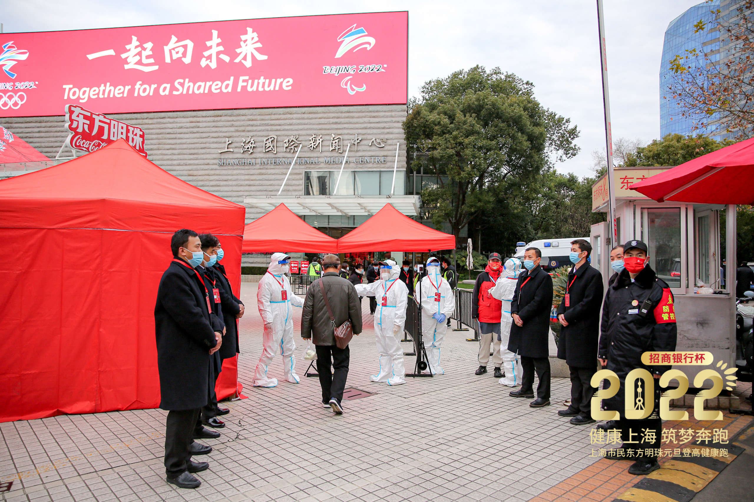 1月1日一早,东方明珠广播电视塔在活动入场处设置防疫点,对所有参与人员逐一进行体温检测和健康码核验,全面做好防疫和安保工作,确保赛事活动圆满举行。比赛全程,工作人员始终做好相关防疫工作,时刻确保活动安全顺利进行。