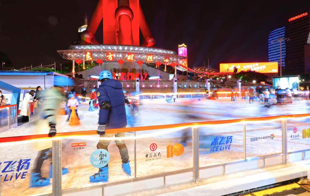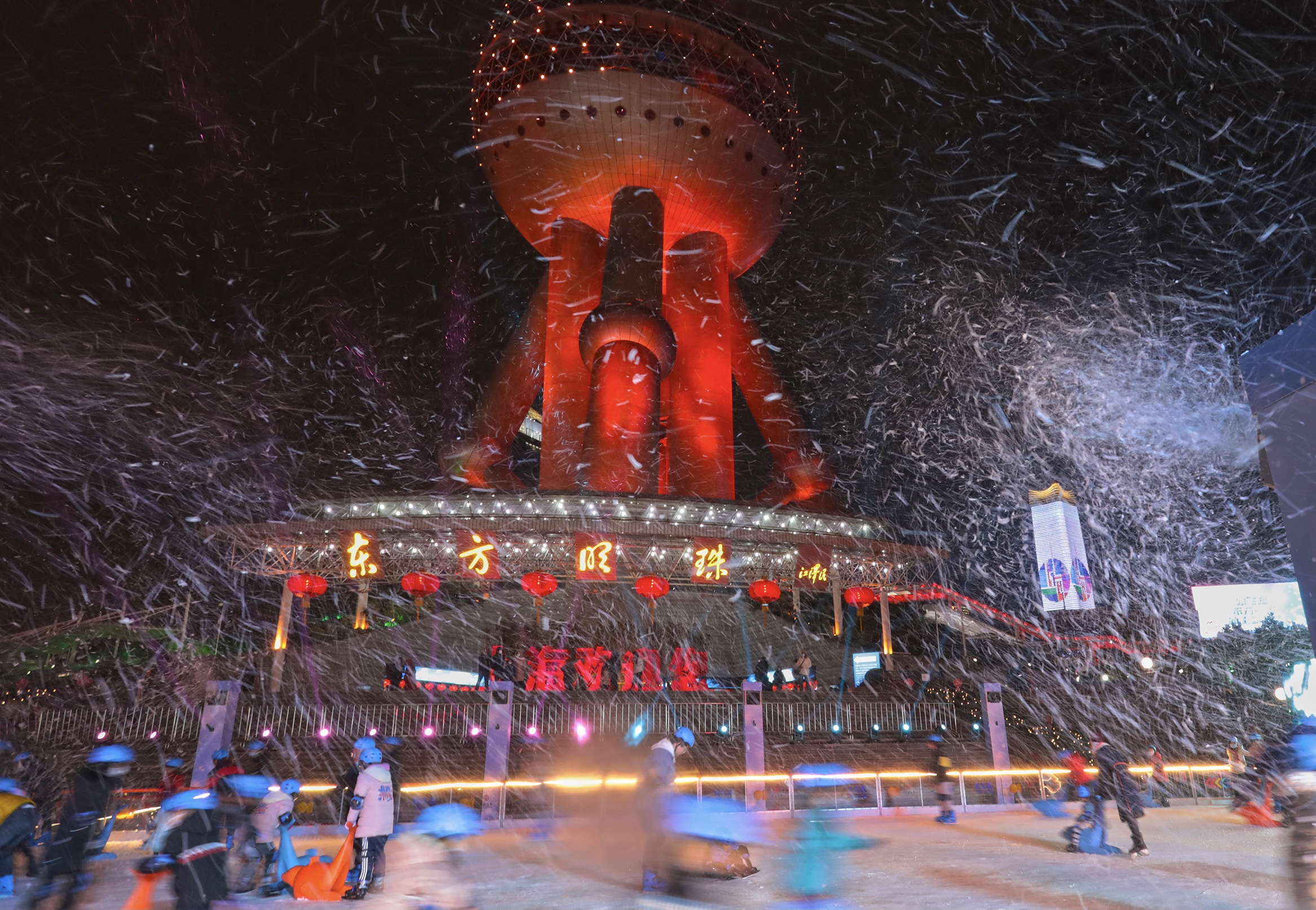 春节假期正值冬奥进行时,东方明珠广播电视塔多次为运动健儿亮灯,致敬奥运精神!塔下城市广场近600平米的大型露天真冰滑冰场,更是让游客走上冰面,尽情体验冰上运动的魅力。