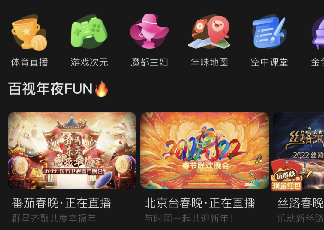 《春满东方点亮幸福·2022东方卫视春节晚会》《我们的歌·新春嗨唱大会》等大量自制精品内容的上线,进一步加深用户对百视TV与东方卫视内容深度耦合的品牌认知。