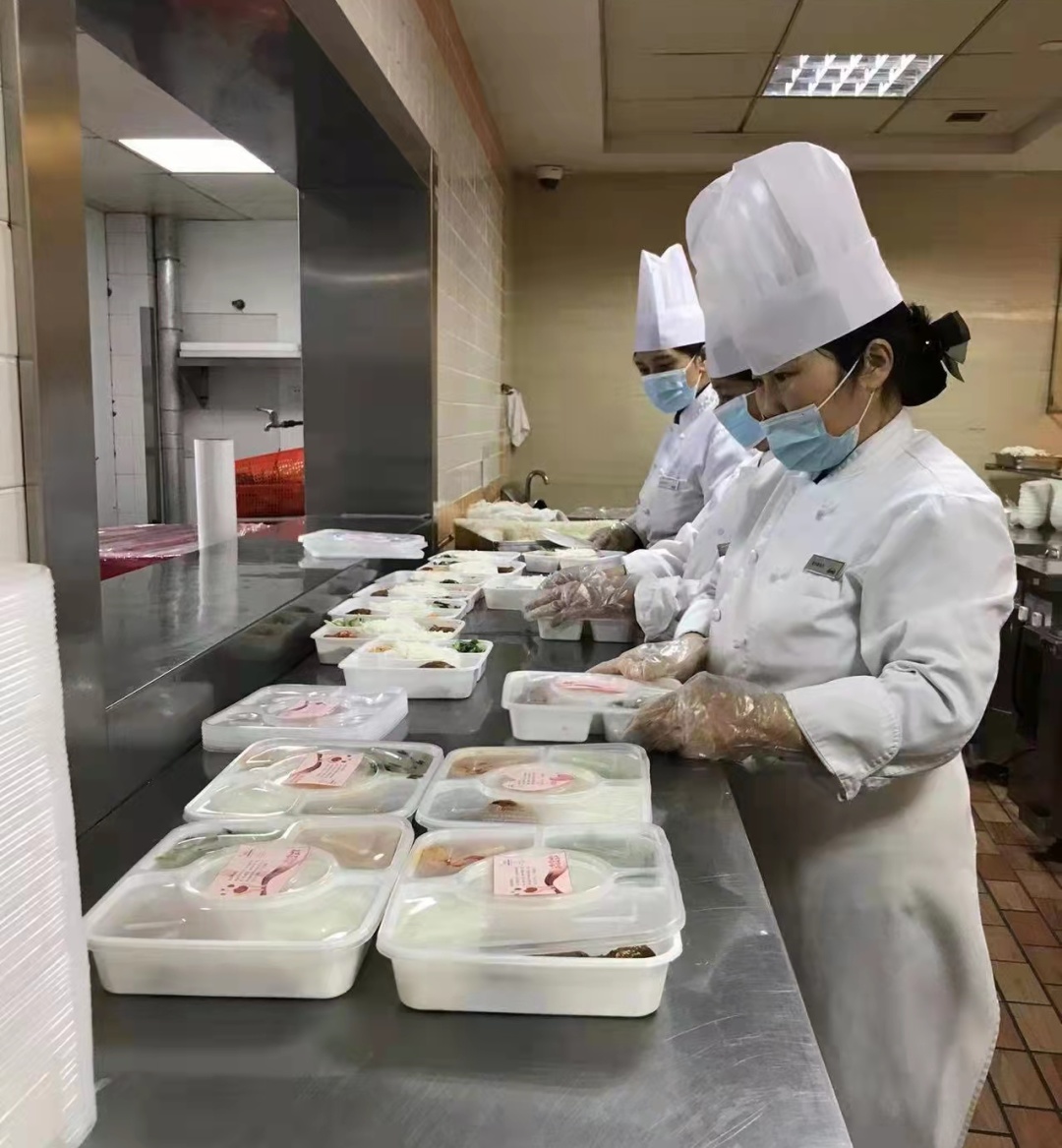 厨房和食堂团队不舍昼夜,合作拟定多套餐饮服务预案,全天候为医务人员供应安全美味、营养健康的饮食。