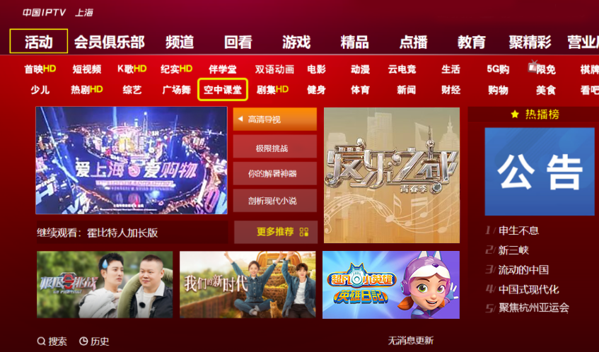 东方有线“空中课堂”点播专区