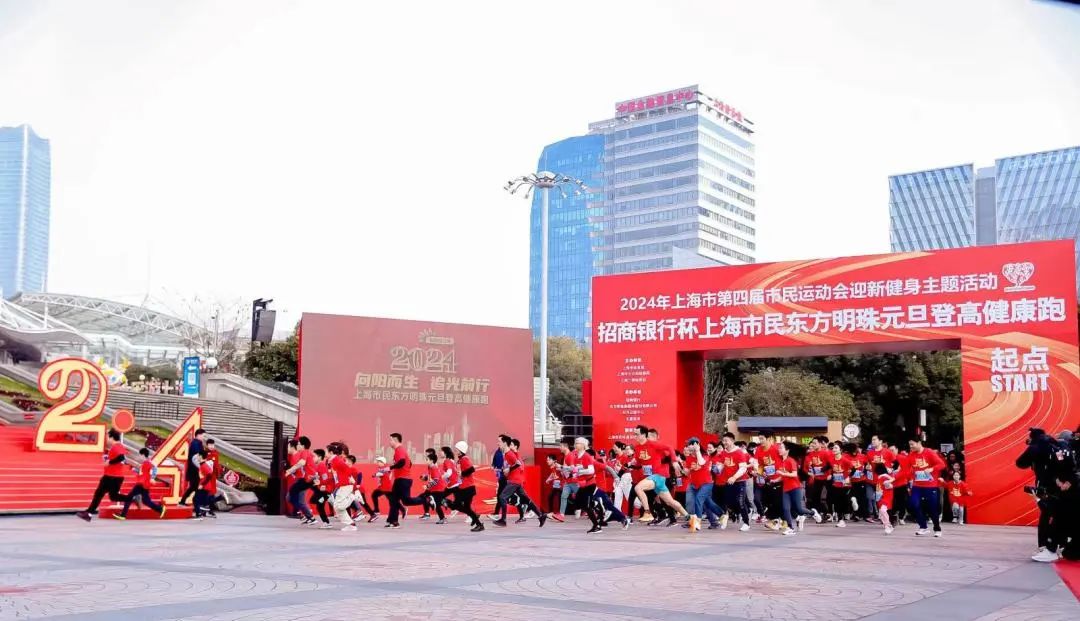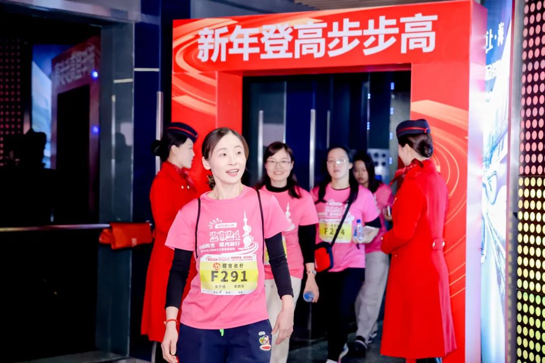 来自社会各界的登高选手从东方明珠城市广场出发,兴致高昂地向位于259米全透明悬空观光廊/90米户外观光廊的终点发起挑战,身体力行记录红红火火的2024年第一天。