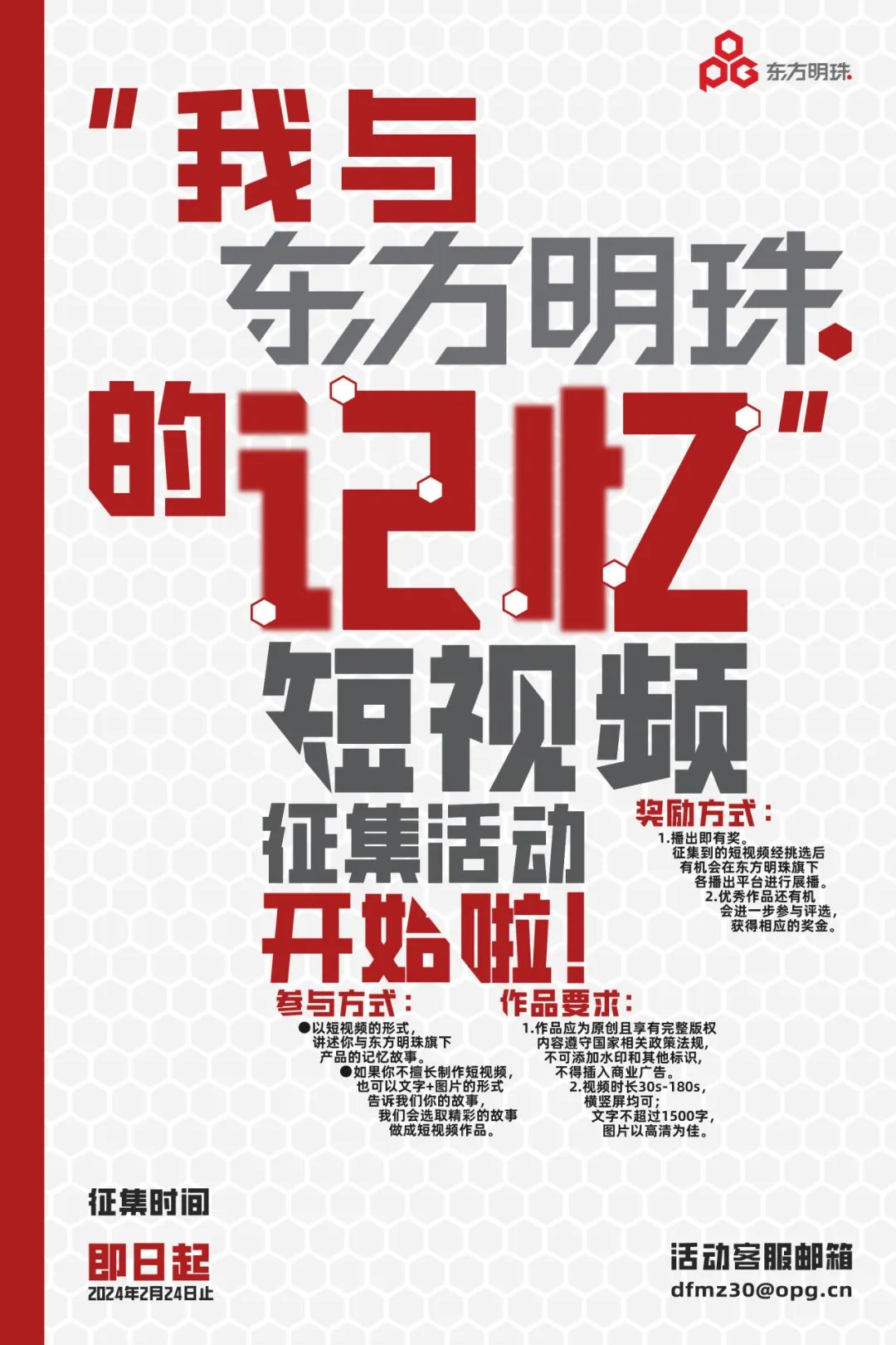 你有与东方明珠新媒体旗下任一产品的美好回忆及精彩故事吗?欢迎用短视频的形式向我们讲述珍贵的故事,有机会在东方明珠旗下平台播出,并获得相应的奖金哦!