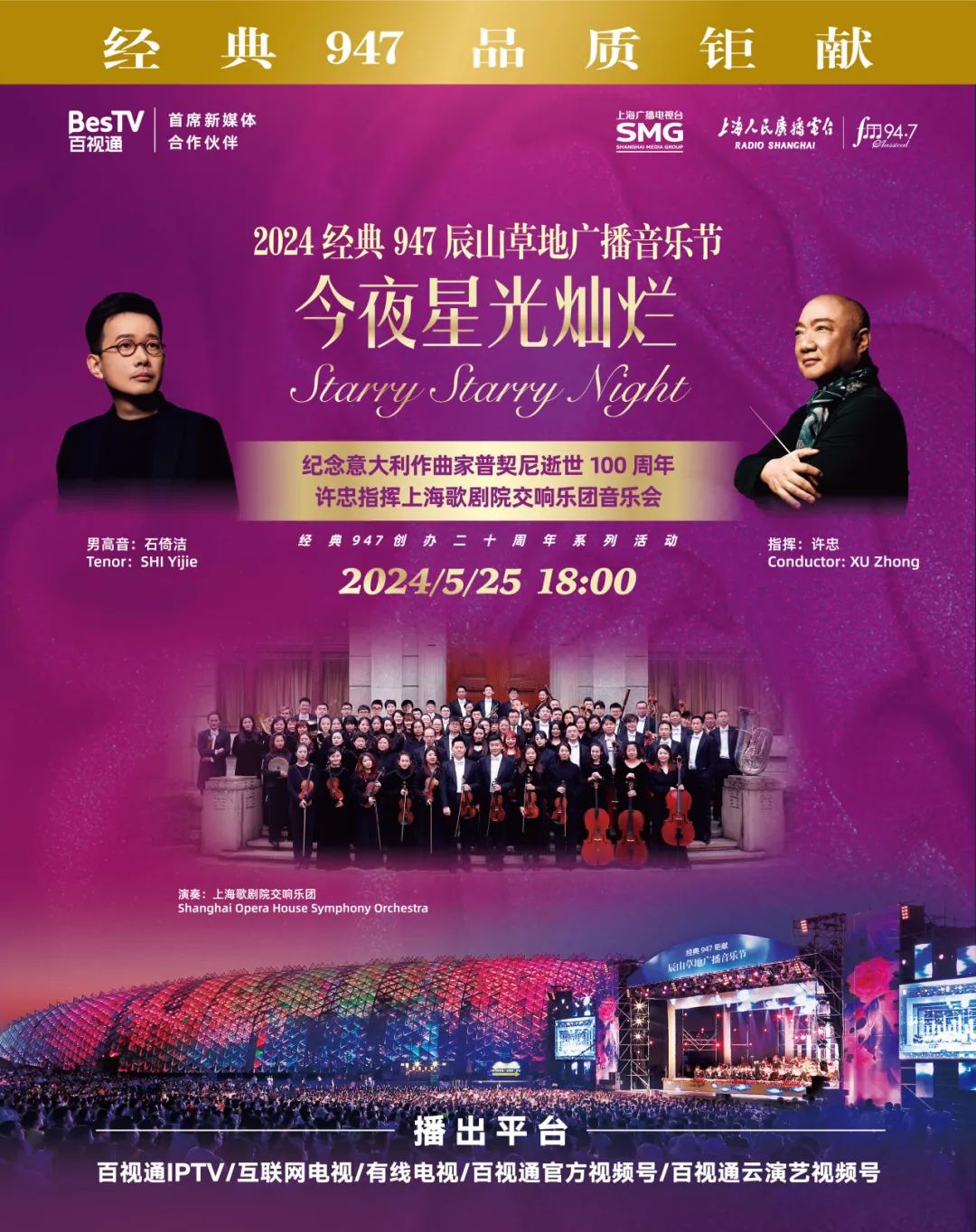 由上海广播电视台、上海市对外文化交流协会主办,上海人民广播电台、上海辰山植物园承办,中国售票体量最大的系列户外古典音乐节——第十二届辰山草地广播音乐节将于5月25日、5月26日荣耀启幕。东方明珠新媒体旗下百视通IPTV、互联网电视及东方有线电视大屏将在“云演艺专区”独家直播音乐节盛况,敬请期待。