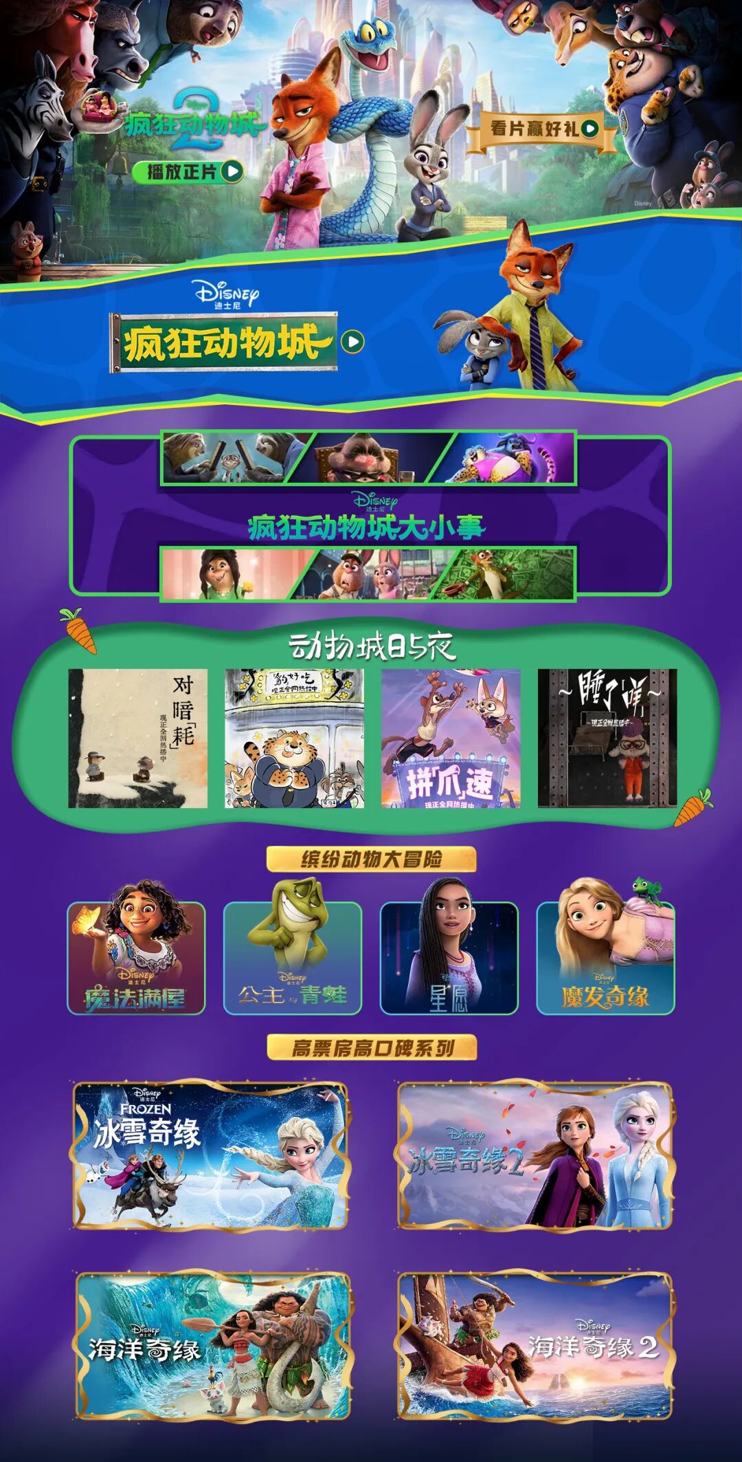 作为迪士尼经典IP续作,《疯狂动物城2》自全球上映后热度持续攀升,全球累计票房超18亿美元,中国内地票房突破45亿元,成为现象级动画佳作。百视通精心打造专属主题页面,以影片角色群像为视觉核心,同步上线由迪士尼中国与上海美术电影制片厂联合创制的《疯狂动物城:动物城日与夜》动画短片系列,为观众呈现丰富多元的观影内容。